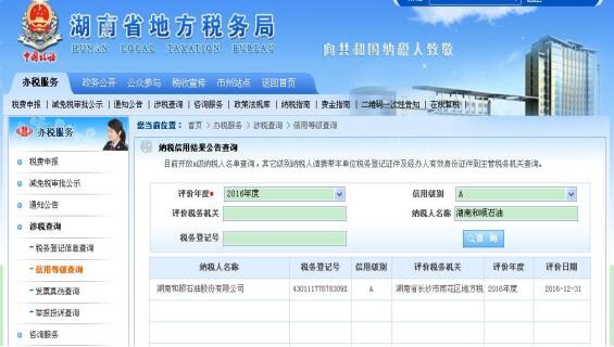 湖南和順石油股份有限公司再次榮獲A級納稅人稱號